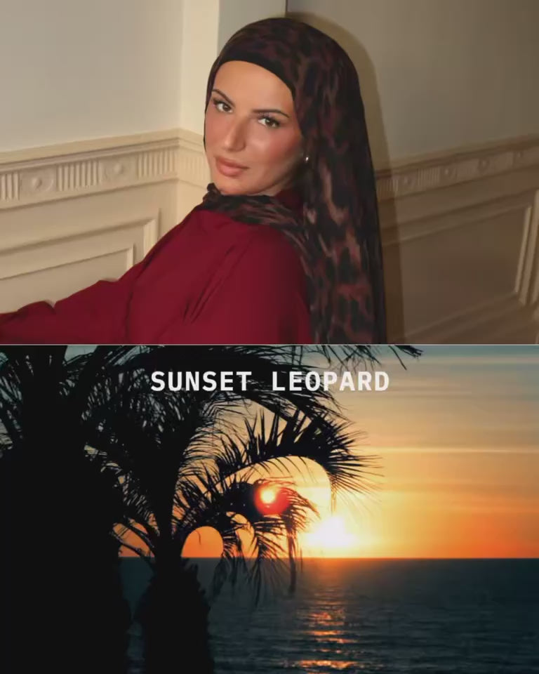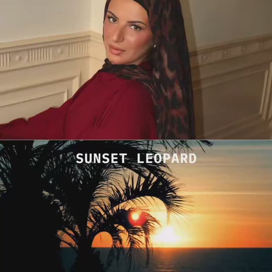 The Sunset Leopard modal hijab features an elegant leopard print in rich browns, subtly accented by warm bronze peaking through like that of a sunset. Made from soft, breathable modal fabric, it offers refined comfort and a graceful touch to any ensemble.